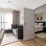 Laulupargi Lux Residence ferielejlighed ligger i hjertet af Tallinn og har et samlet areal på 44 m^2. Der er også et udstyret køkken, som er udstyret med et køleskab, en ovn og køkkenudstyr.